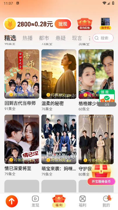 奖励机制:用户在观看短剧或完成特定任务时,可以获得金币奖励。通过金币可以兑换红包或其他实物奖励,增加了娱乐性和赚钱的双重体验。