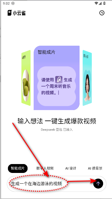 这是其最核心的AI视频创作功能。用户只需输入一句简单的文字描述(例如:“落日下的海滩,情侣牵手漫步”),小云雀App就能智能分析文字内容,并利用其AI算法自动匹配素材(视频片段、图片、音乐等),剪辑生成一个完整的视频作品。
