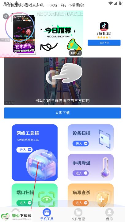 “全场景工具集成” 告别应用冗余:突破单一工具的局限,整合系统优化(降温、查杀)、网络管理(网络工具箱、设备扫描)、文件处理(加密、压缩、转换、传输)三大核心场景功能,覆盖日常手机使用 90% 以上的高频需求。无需在多个 APP 间切换,既节省手机存储空间,又提升操作效率,尤其适合不想安装过多应用的用户。