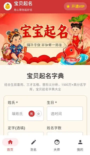 3、进入软件首页,可开始选择给宝贝起名等
