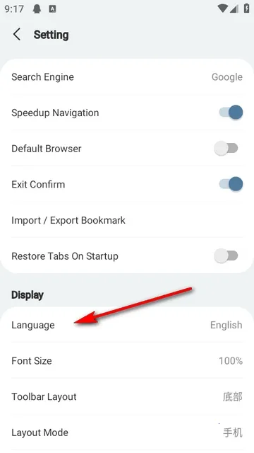 2、进入设置界面,选择语言language。