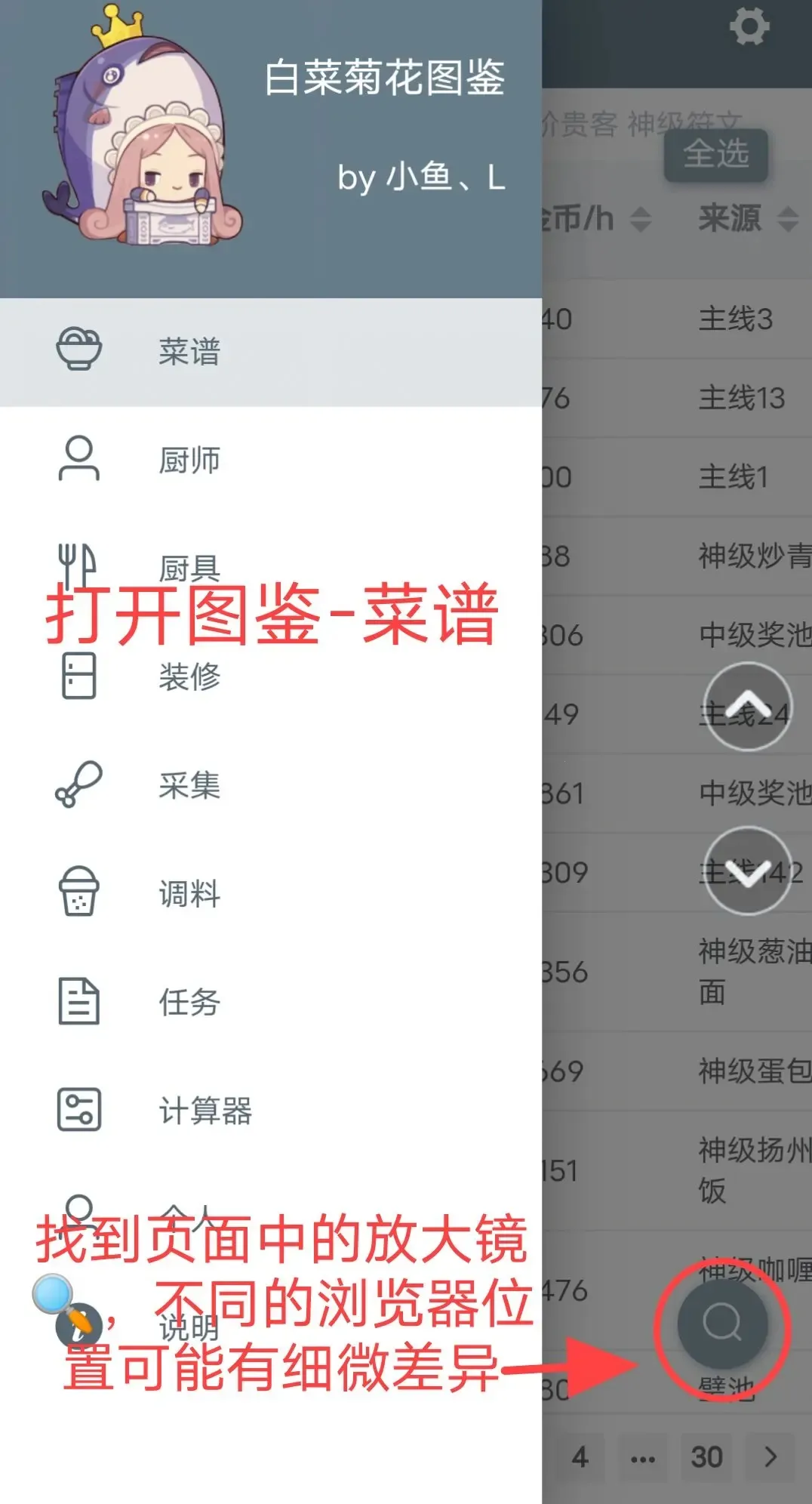 白菜菊花计算器是一款超实用的游戏辅助工具哦。它有个超厉害的图鉴系统,能帮你解决不少游戏里的难题。每周五的厨神大赛,你可以用它输入厨师和菜谱,自动匹配最佳组合,推荐出战阵容。贵客需求复杂?在菜谱栏右侧搜索框输入贵客名,就能查看偏爱料理和所需品阶啦。
