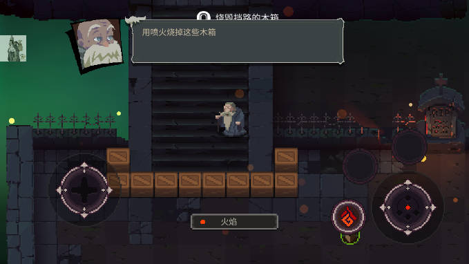 7、先选择火和土元素,然后拖拽施法键瞄准火盆就可以通关;