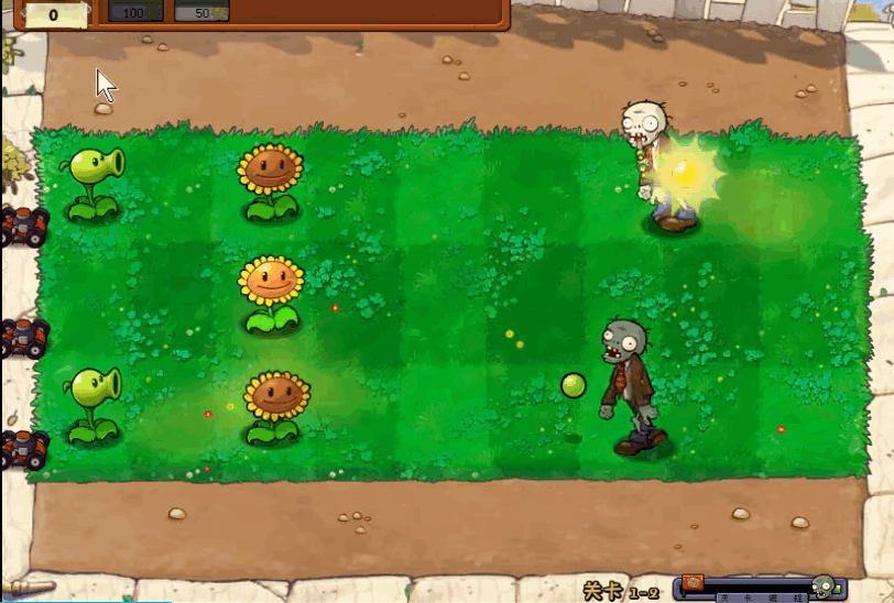 3、僵尸靠近后,植物不断攻击,比如豌豆射手可以发射豌豆。