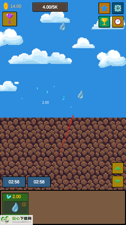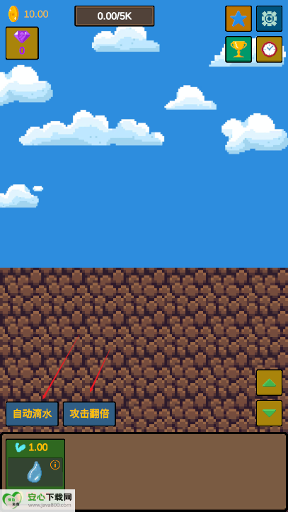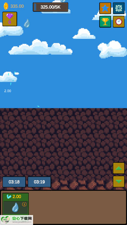 极简循环带来即时满足感:核心玩法围绕“点击获水滴—滴石得金币—升级解锁道具”的紧凑闭环展开,操作门槛极低,每一次点击都能获得明确反馈,让玩家在短时间内就能感受到成长的喜悦,完美适配碎片化休闲场景。