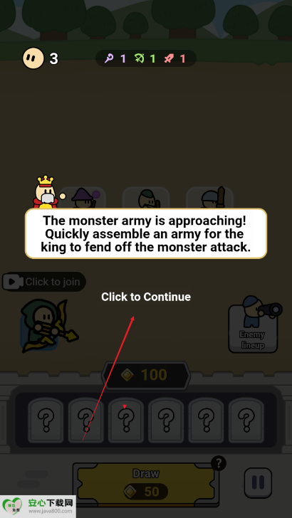 无敌国王游戏免广告版(com.dugmghjk.invincible_king)是一款融合策略与冒险元素的休闲手游。玩家将在游戏中指挥自己的军队,选择多种兵种并扩展自己的力量。简单易上手的玩法和丰富的剧情故事,使这款游戏特别适合喜欢策略塔防与放置类玩法的玩家。