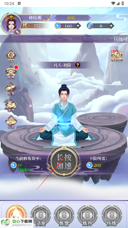 1.静心吐纳玩法:作为修仙基础核心模式,玩家无需复杂操作,只需通过点击屏幕触发吐纳动作,吸收天地灵气转化为修为。过程中可选择不同的吐纳姿势,如坐禅、站桩等,对应不同的灵气吸收效率。同时需留意环境灵气浓度变化,在灵气峰值时段进行吐纳可获得修为加成,闲暇时也能自动积累修为,适配碎片化时间体验。