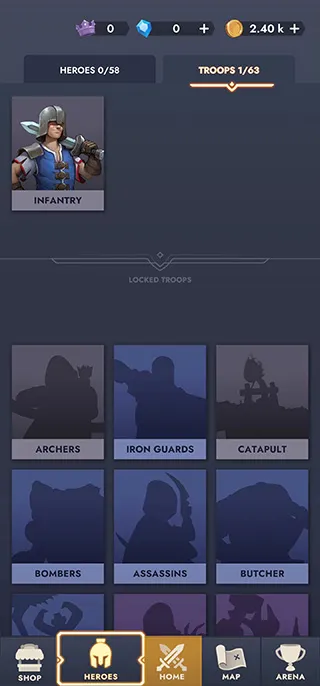 1. 可在战场进行兵种组合,打造专属战斗阵容。