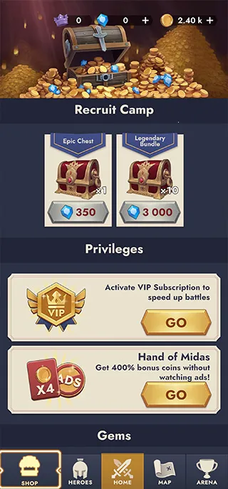 2、英雄助力战斗:能选择强大英雄,在战场中获得强大属性加成,提升战斗实力。