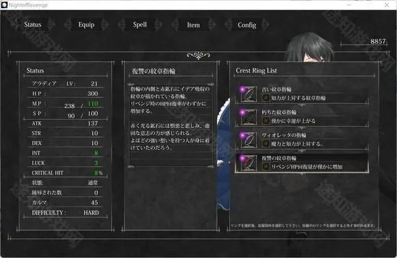 这里纠正一下,复仇纹章戒指是提升武器攻击恢复HP量,不是处决回复量