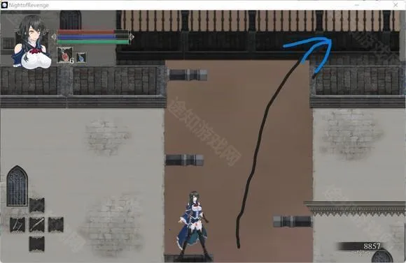 接着我们从捷径回到如图的地方,这次我们往右边走,会遇到一个下级审判官解决后往前走,有两条岔路,一条往前,一条往上,我们先往上面走