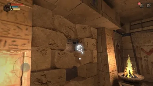 5、在探索墓室场景的过程中,会出现发光的物品,靠近并点击它们,可以获得相应的线索,同时也有武器和装备可用。