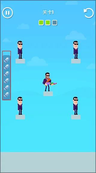 4. 极具挑战性:每一关都有有限数量的子弹,需用一颗子弹射击多人,胜利与否取决于玩家决策,充满挑战性,考验玩家智慧。