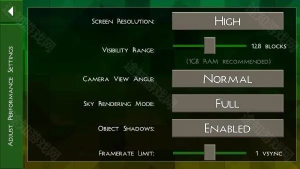 2、“settings”中的“performance”中,可对游戏中的画质进行自定义设置,对于设备配置较低的玩家,可适当的降低画质,来提高游戏的流畅性