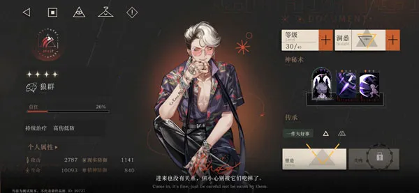 先来比一下个人属性:左侧是狼群1级的面板,右侧是狼群洞悉一30级的面板。
