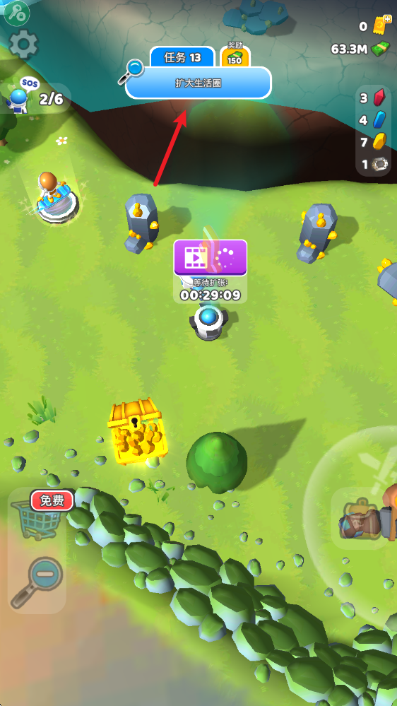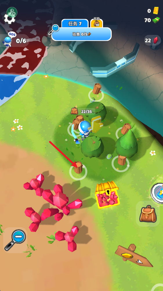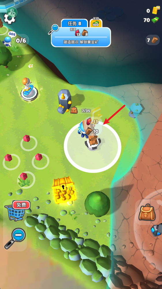 1、游戏中通过拖动屏幕控制角色移动,靠近资源后就会自动采集。